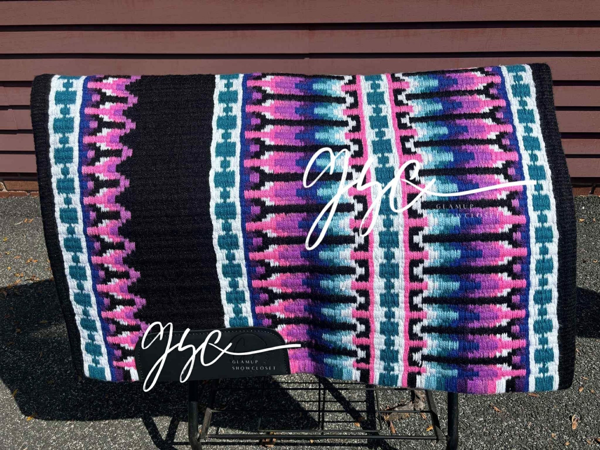The collar, front placket and cuffs are fully embellished with a stunning combination of geometric patterns, sparkling rhinestones, leather appliques and metallic accents.